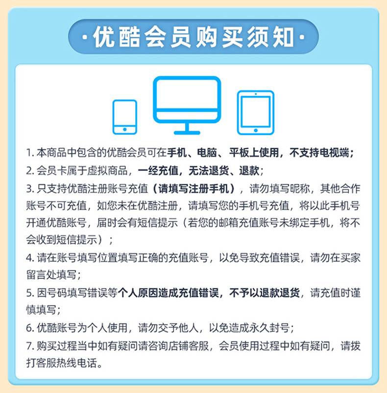 【官方直充】优酷视频会员1个月