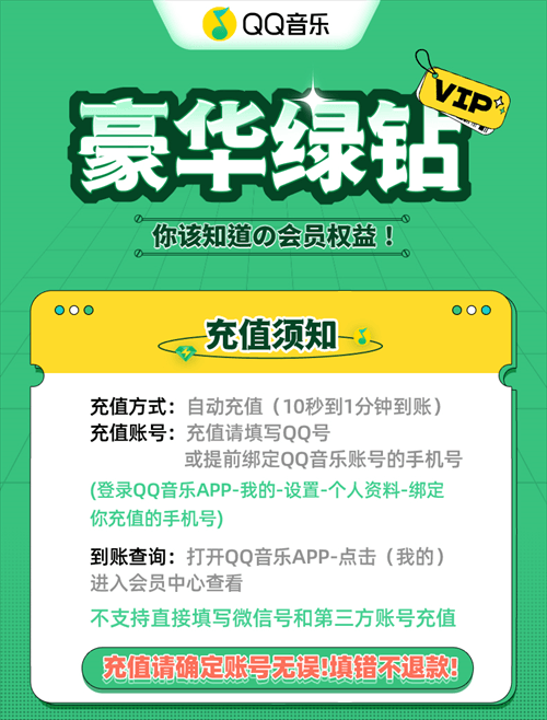 【官方直充】QQ音乐豪华绿钻3个月